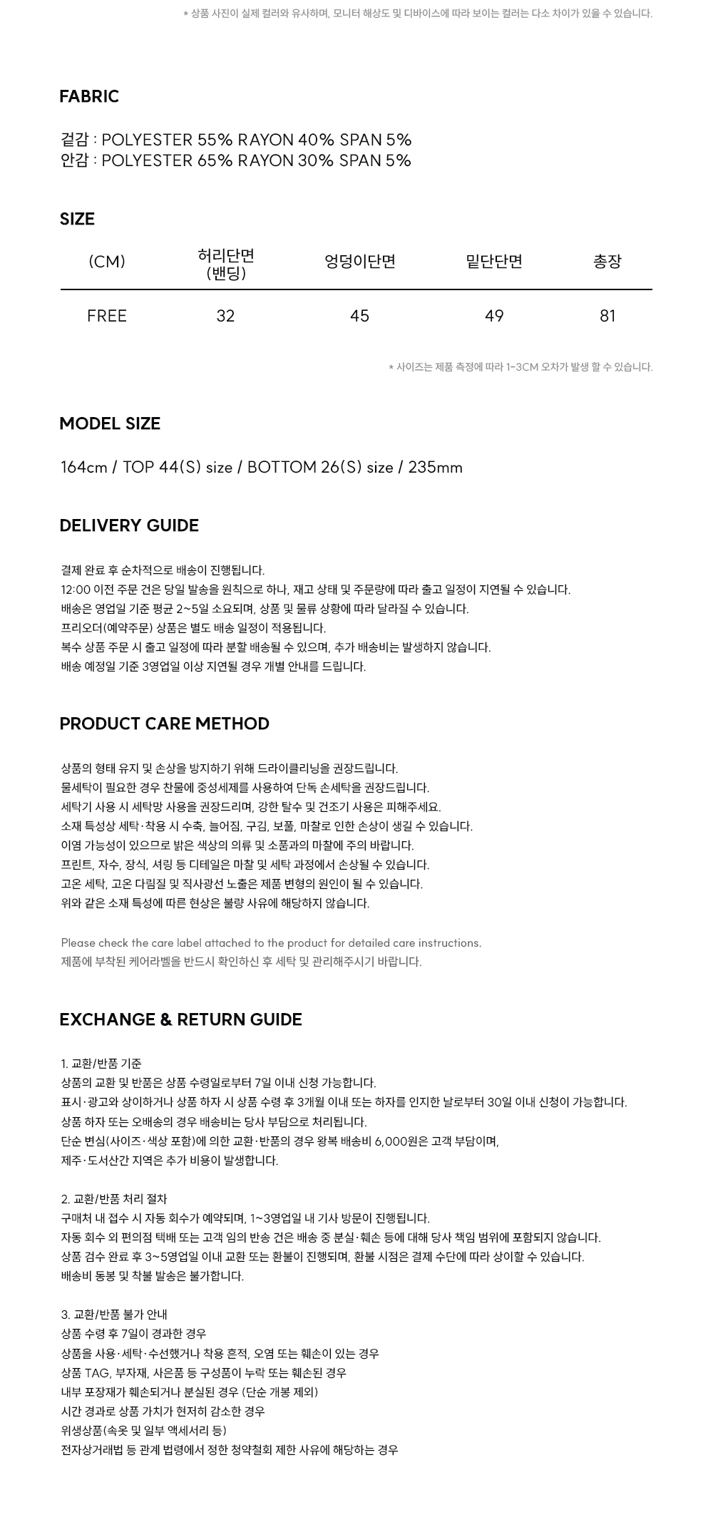겉감 : POLYESTER55% RAYON40% SPAN5%