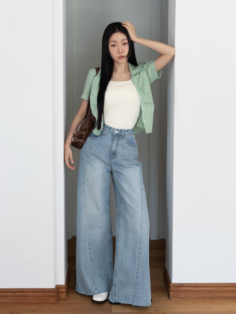 DIAGONAL CUT FLARED JEANS