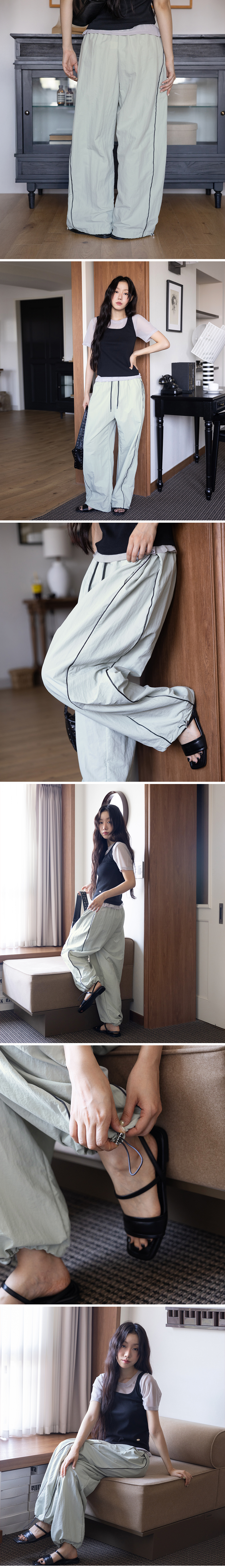 02/ 사이드 배색 파이핑 디테일이 스포티한 무드를 연출합니다.